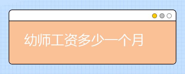 幼师工资一般是看级别的,幼师也分级别的哦,工资也因为所在幼儿园的性质和规模而不同而有差异,而且,根据个人能力和工作经验差别非常大。 更多高考资讯尽在东南教育网https://www.30gk.com/