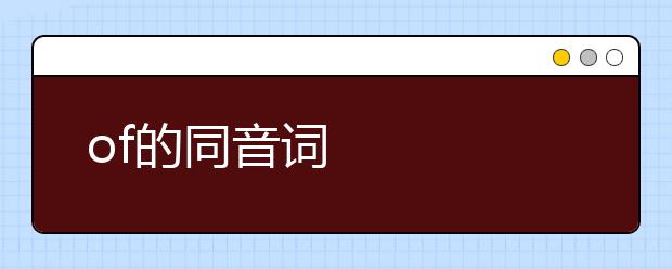 Of的同音词是Off。Of是英语中常用的介词、助动词。翻译成表示……的;由…制成等意思。off可以用作介词、形容词、副词、动词、名词,意思是起跑或者杀死。 更多高考资讯尽在东南教育网https://www.30gk.com/