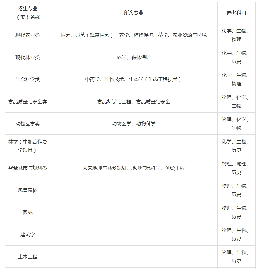 以上就是本站一对一老师整理的浙江农林大学在浙招生专业类选考科目范围,希望能帮助大家。