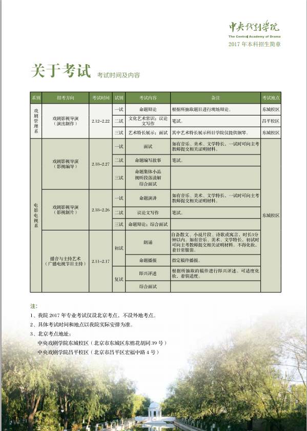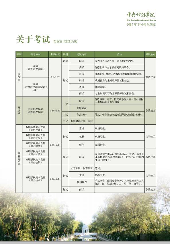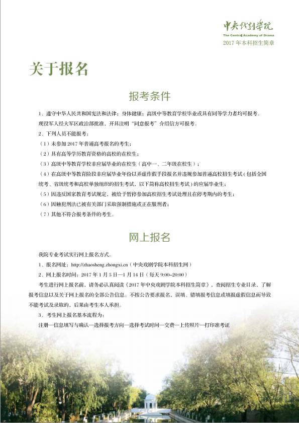 2017艺考,中央戏剧学院本科招生简章